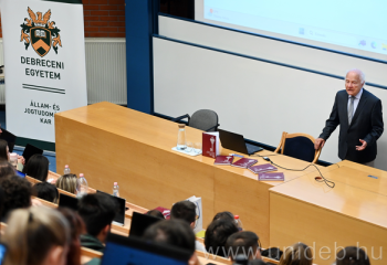 Az elmúlt két évszázad kiemelkedő hazai magánjogtudósairól, azok eredményeiről, hatásukról, illetve a magánjog változásairól, fejlődéséről tartott előadást a Debreceni Egyetem Állam- és Jogtudományi Karán Vékás Lajos neves jogtudós. Az eseményen több mint kétszáz hallgató és oktató vett részt.